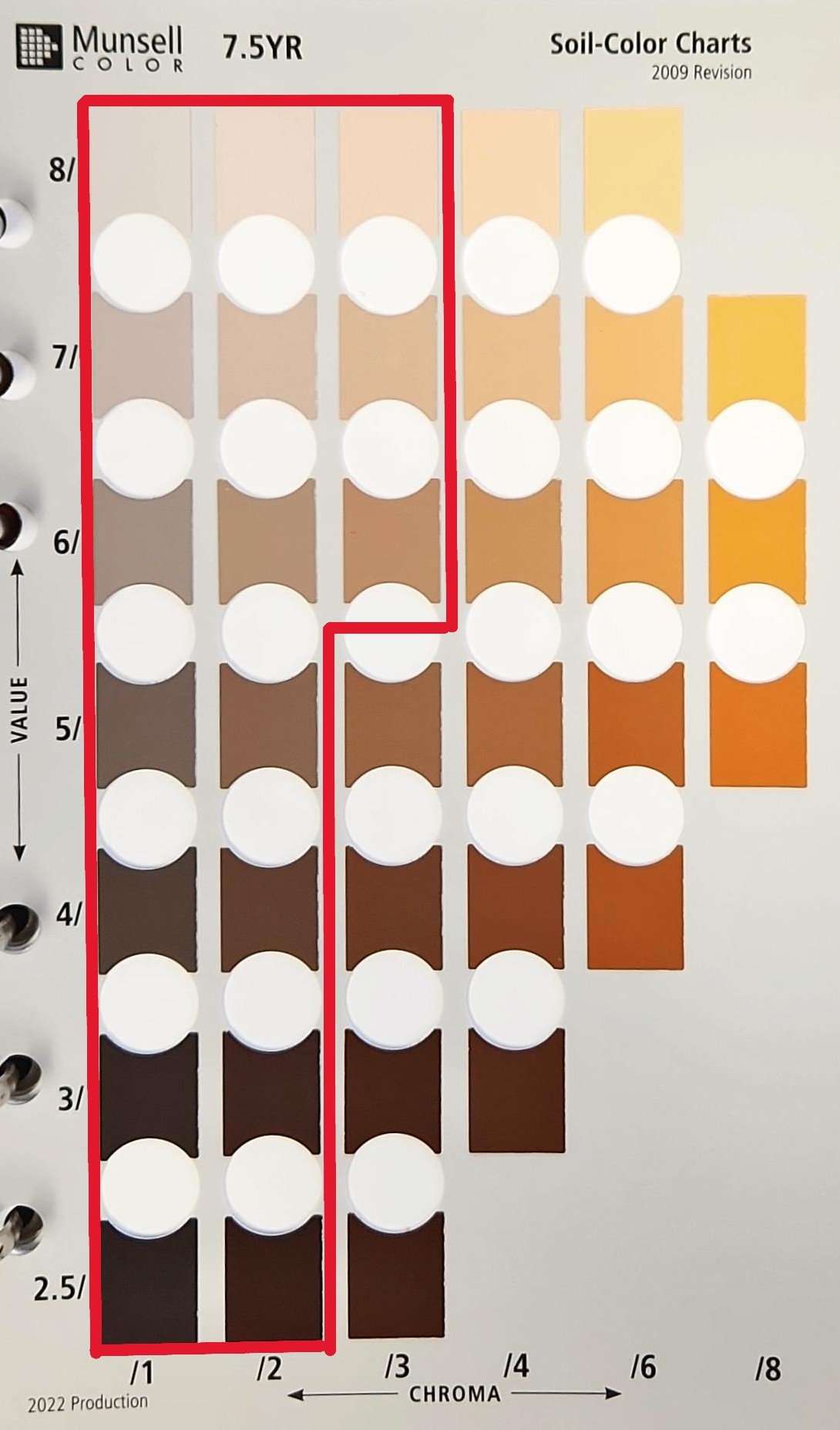 The matrix colour of the soil is the dominant ‘background’ colour. This excludes the colours of redox-induced mottles.